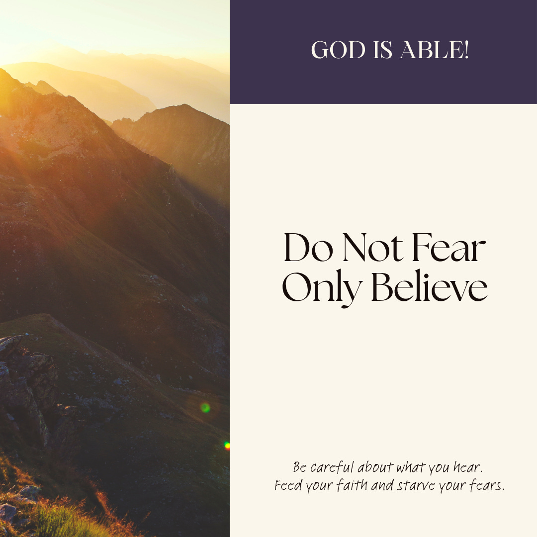 Only believe. The opposite of fear is faith. Build your faith. As the popular saying goes, “Feed your faith and starve your fears.”