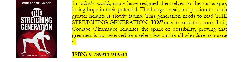 It will require discipline and consistency. My father in the Lord calls this, “Stretching in the area of your desire.” I would recommend his book, The Stretching Generation. It was launched today.